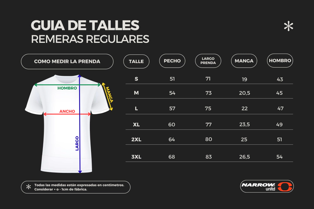 Con un calce recto, esta remera se adapta a diferentes tipos de cuerpo, realzando la silueta sin sacrificar la comodidad. La estampa de la marca Narrow aporta un toque moderno y distintivo, perfecta para quienes desean destacar sin complicaciones. Su versatilidad la convierte en una prenda fácil de combinar con jeans, shorts o incluso con una chaqueta para un look de entretiempo.