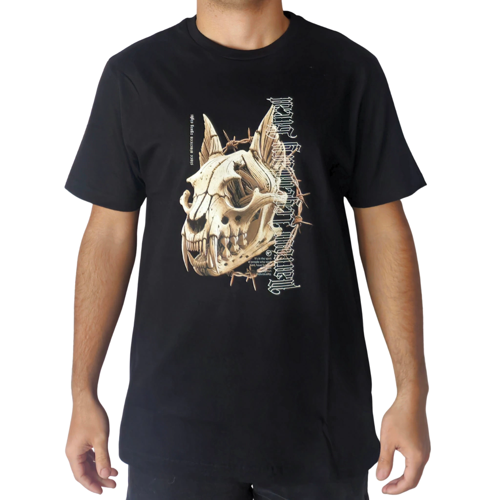 El estampado de esqueleto animal destaca con un estilo atrevido, atraído por aquellos que desean expresarse a través de su vestimenta. Esta remera es versátil y se puede combinar fácilmente con jeans, shorts o cualquier otra prenda de su armario.